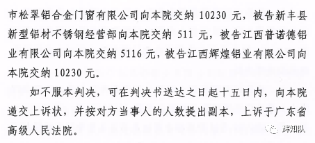 娄底凤铝系列维权案:诉辉煌公司等四被告,法院判赔250余万
